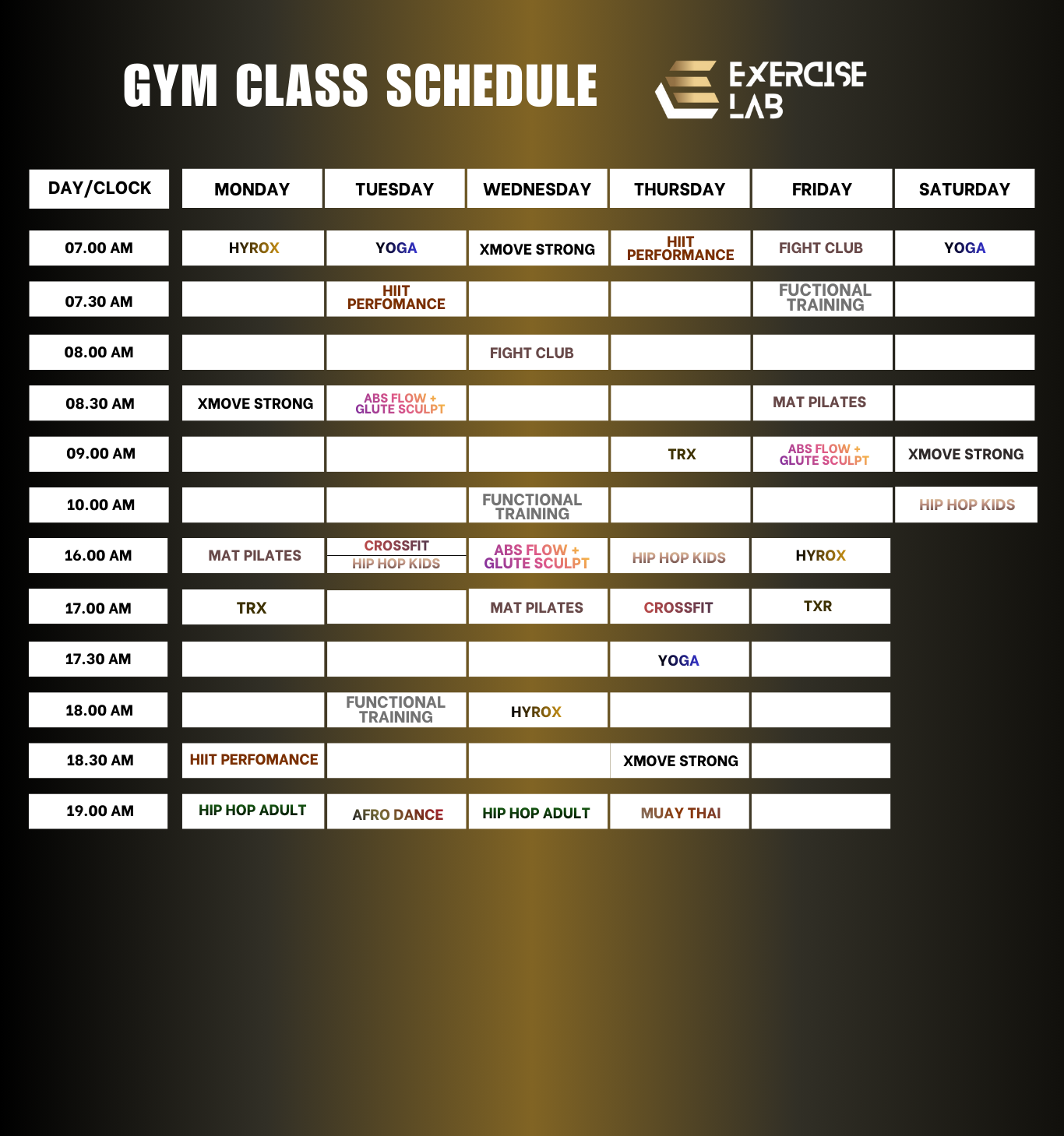 Gym Class Schedule